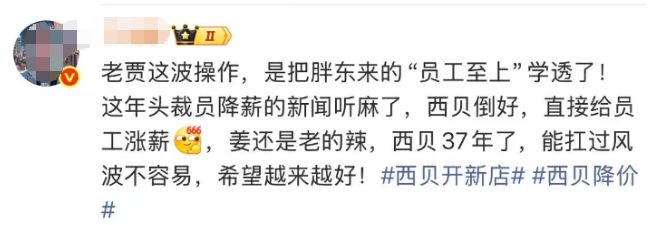 据此前报道,西贝曾于9月12日召开1.8万人员工大会,贾国龙在会上宣布将向一线员工发放500元补贴。据记者了解,该项补贴在9月份就已经到账,10月份转变为奖金收入的一部分,固定保留在一线员工的收入体系中。