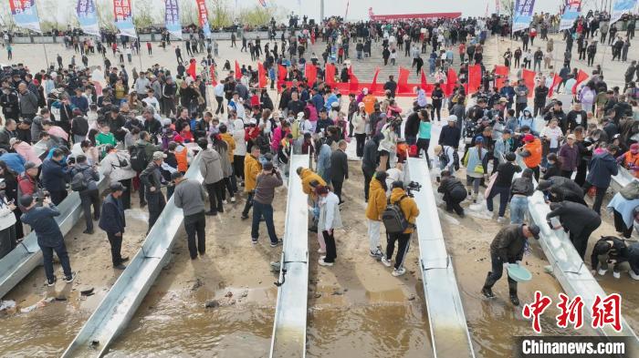 5月2日,抚远市举行大马哈鱼苗人工增殖放流活动。抚远市已连续35年累计放流大马哈鱼苗4394万尾。 李拥军摄