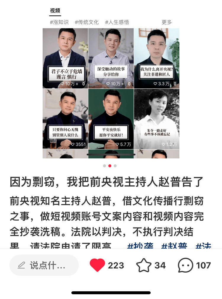 网友发帖称:“因为剽窃,我把前央视主持人赵普告了。”