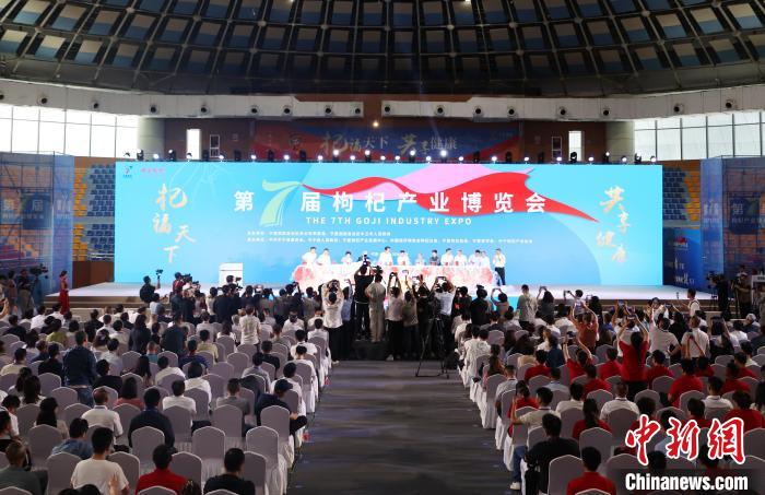 6月21日,第七届枸杞产业博览会在“中国枸杞之乡”宁夏中卫市中宁县启幕。本届博览会主题为“杞福天下,共享健康”,采取“线上+线下”的多元化模式,打造一个全面、立体的枸杞产业交流平台,推动宁夏现代枸杞产业高质量发展。第七届枸杞产业博览启动仪式现场。中新社记者于晶摄