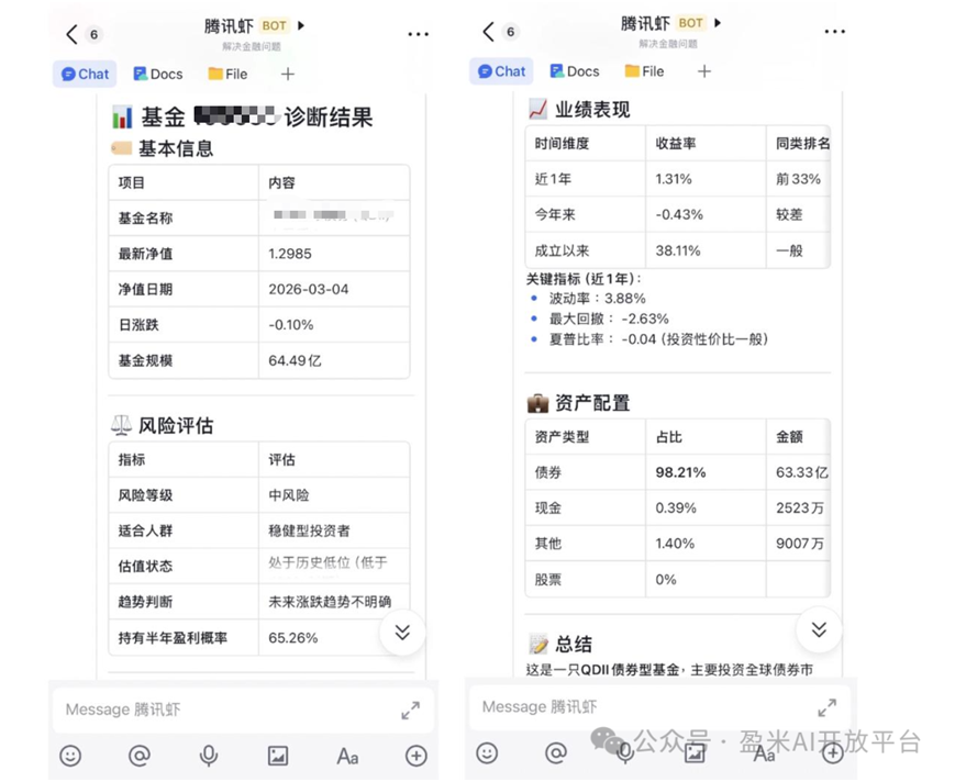 3月9日,记者从盈米基金了解到,在接入且慢MCP工具后,“龙虾”即可解锁机构级投资顾问的能力,可以帮助实现基金数据查询、基金诊断、资金规划和资产配置建议等投资服务功能。